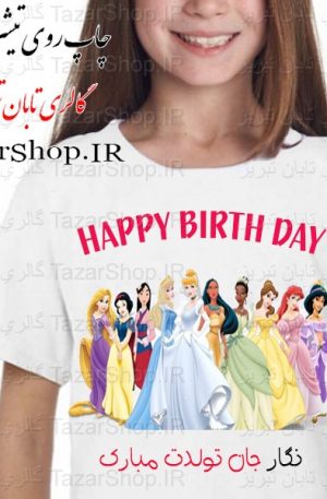 چاپ تیشرت تولد با تم دختران دیزنی در تبریز